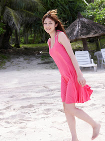 Honey you look like a pink flower on the sunshine of this beach.LOL I am not a poet girl but I mean it.Yumi Kobayashi very stand out in pink casual dress on this beach.